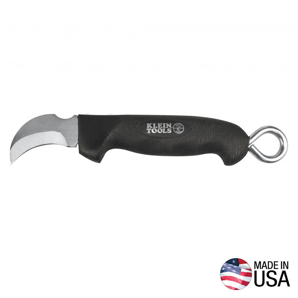 The Klein Kurve Skinning Knife from ÐÔÉ«ÊÓÆµ features a 2-Inch (51 mm) blade that gives increased control when scoring and slitting the cable jacket. A notch on the back of the blade works well for scraping and removing insulation. The oversized ring provides added strength and makes it easy to store.
