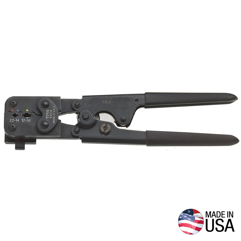 - Compound-action tool crimps 10-22 AWG insulated terminals to meet or exceed MIL-SPEC pull-out tests