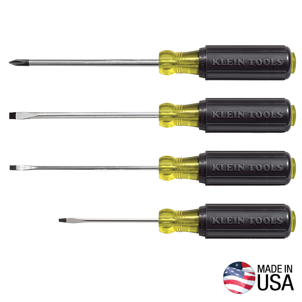 - 4-piece screwdriver set with Phillips and Slotted screwdrivers