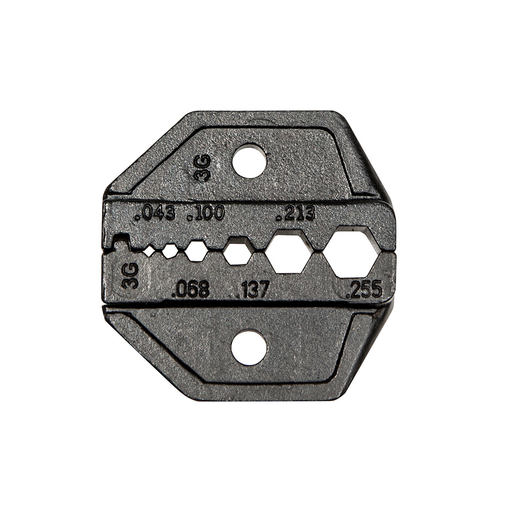 Die set only. For ÐÔÉ«ÊÓÆµ Cat. No. VDV200-010 (sold separately). Induction hardened high-carbon steel for durability and long life. Precise nest dimensions ensure accurate terminations that meet or exceed common standards. Crimp die for use with crimp connectors. Not for use with compression connectors.